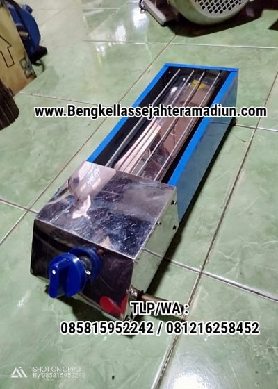 Beranda » Alat Perlengkapan Usaha » Kompor Panggang Sosis Sate DLL Ukuran 11*26 Dengan Tempat Saklar Mesin Bahan Steinless