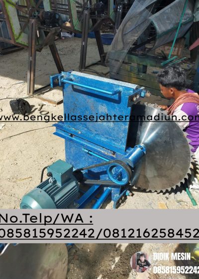 Beranda » Alat Perlengkapan Usaha » Mesin potong batu kapur model horizontal peso model gerigi diameter 70 cm komplit dinamo 3 phase 5 hp