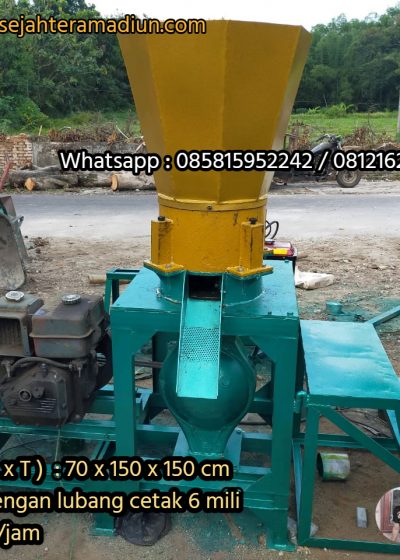 Kapasitas : Dengan lubang cetak 6 mili +- 800-1 ton /jam