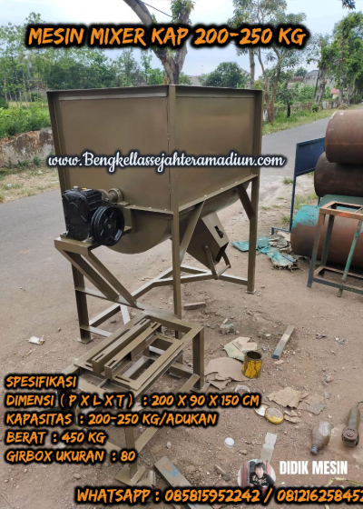 Mesin Mixer Pakan Ternak Kap. 200-250 Kg/Adukan Girbox Ukuran 80 Tanpa Penggerak