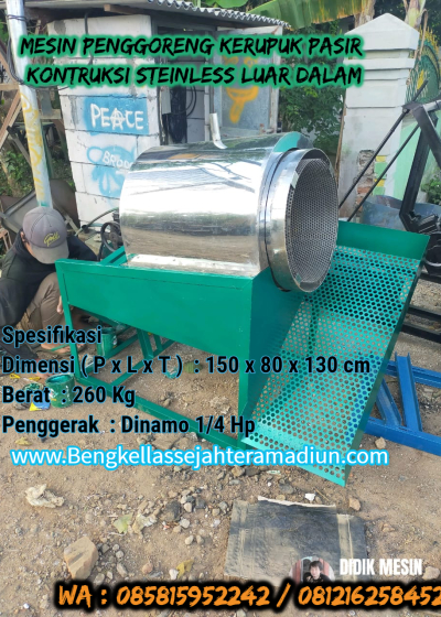 Mesin Penggoreng Kerupuk Pasir Kontruksi Steinless Luar Dalam Komplit Penggerak