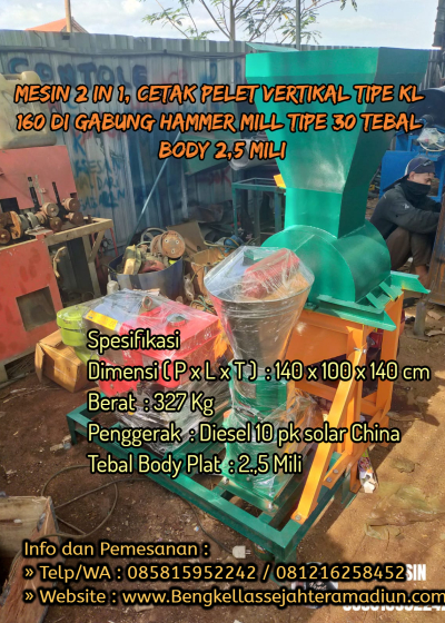 Mesin 2in1(Cetak pelet vertikal tipe KL 160 di gabung Hammer Mill tipe 30) Ketebalan Body 2.5 Mili Komplit Penggerak