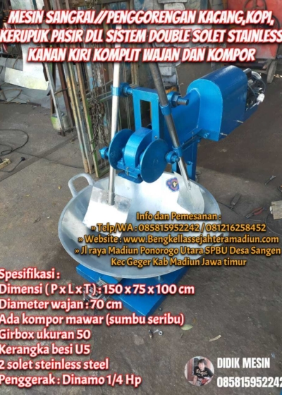 Mesin Sangrai//Penggorengan Kacang,Kopi,Kerupuk Pasir dll Sistem Double Solet Stainless Kanan Kiri Komplit Wajan dan Kompor