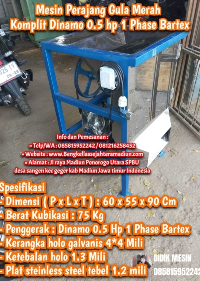 Detail Produk Mesin Perajang Gula Merah Komplit Dinamo 0.5 hp 1 phase Bartex