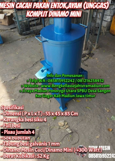 Detail Produk Mesin Cacah Pakan Entok,Ayam (Unggas) Komplit Dinamo Mesin Cuci atau Dinamo Mini