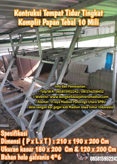Detail Produk Kontruksi Tempat Tidur Tingkat (Komplit Papan Tebal 10 Mili )