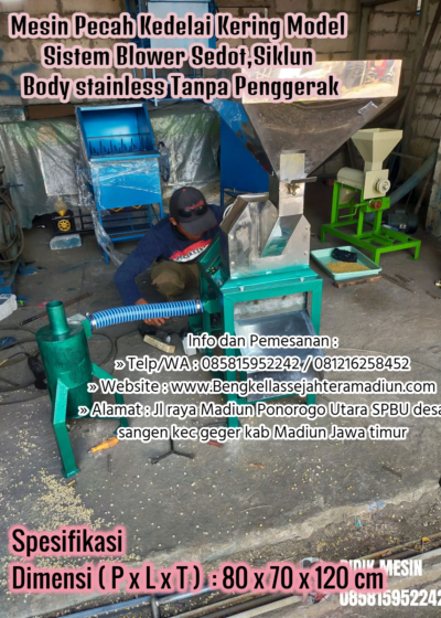 Detail Produk Mesin Pecah Kedelai Kering Model Sistem Blower Sedot,Siklun Body stainless Tanpa Penggerak
